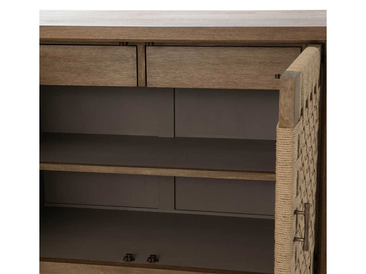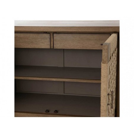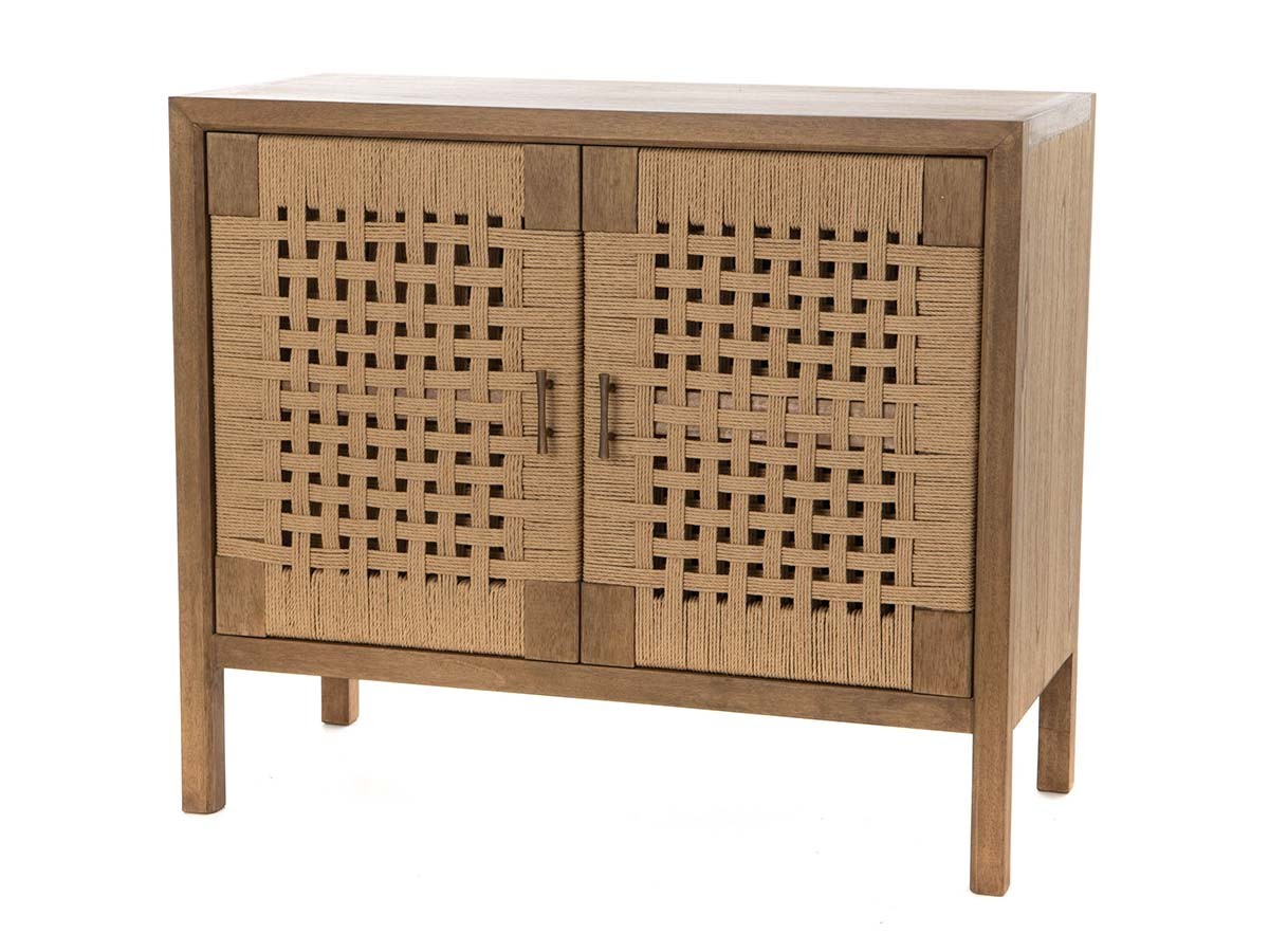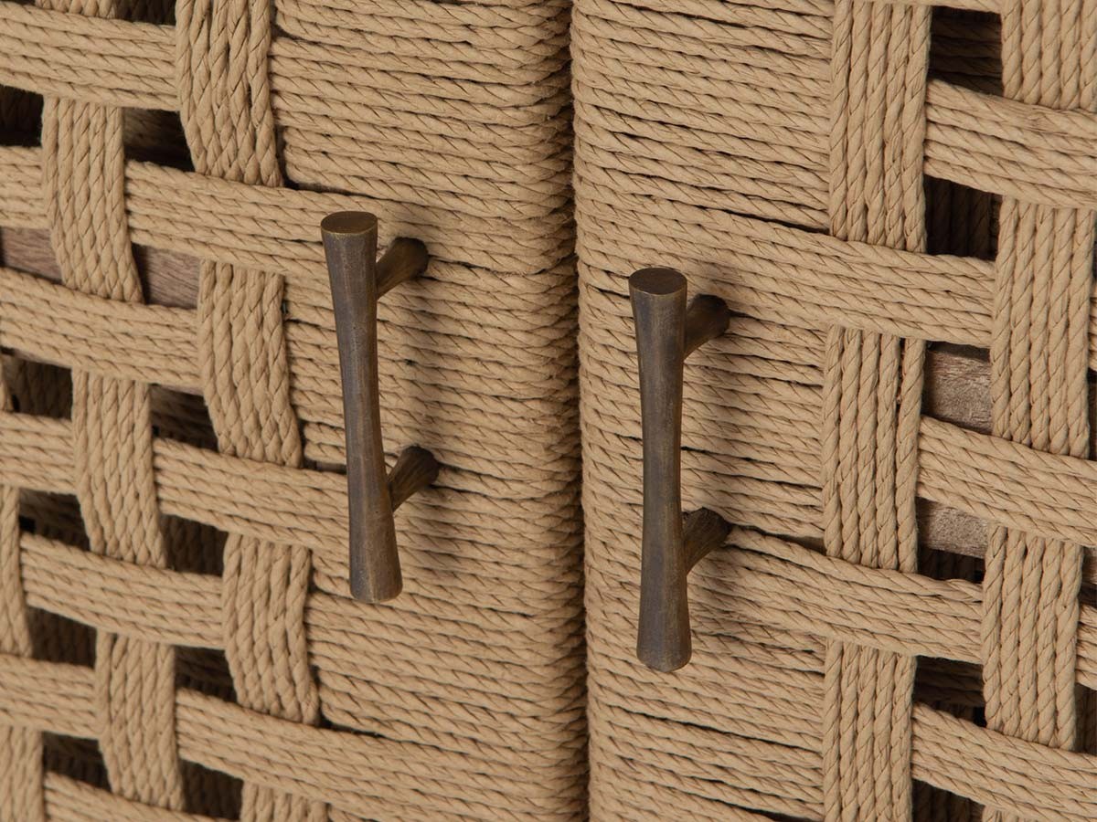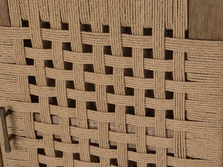 Fabriqué en bois bayur, bois de la famille des acajous, il possède deux portes tressées en corde qui lui confèrent un look très naturel. Il s'harmonisera parfaitement dans un intérieur nature.