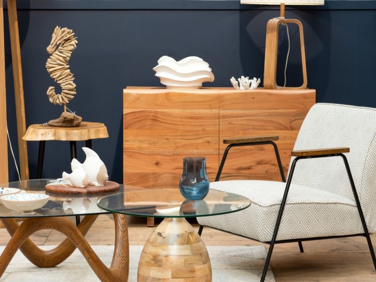 Mixez des objets déco en céramique, métal et bois pour un look harmonieux et dynamique.