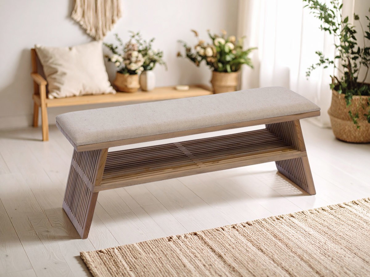 Un banc en bois avec assise confortable et rangement
