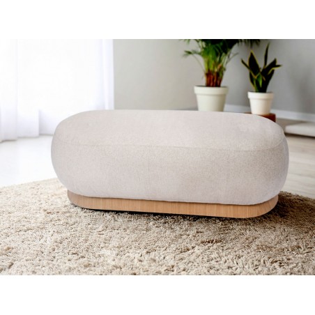 L'assise moelleuse repose délicatement sur une structure en bois clair, créant un contraste subtil avec le revêtement. Placé dans votre salon ou votre bureau, le banc Dottie allie confort et apporte une touche naturelle et douce à votre décoration.