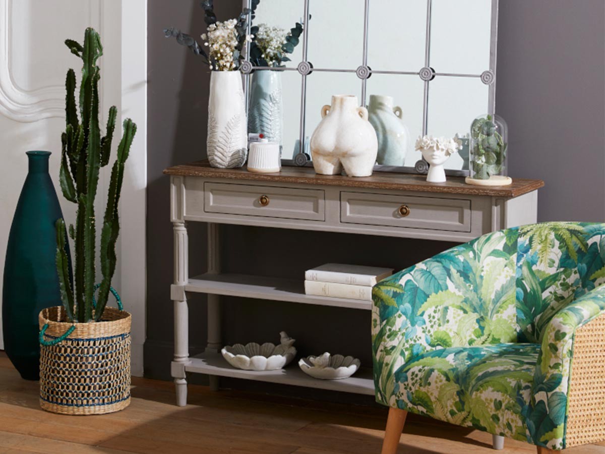 • Dans le salon, cette console vous permettra d'exposer fièrement vos plus beaux objets de décoration, de vos statuettes préférées aux éléments les plus insolites.