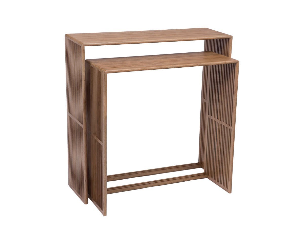 C'est une véritable touche de naturel et de modernité qu'apportent ces 2 consoles en teck Calopsite d'Amadeus. Parfaites pour donner le ton à votre décoration intérieure, elles sont également pratiques pour organiser l'espace.