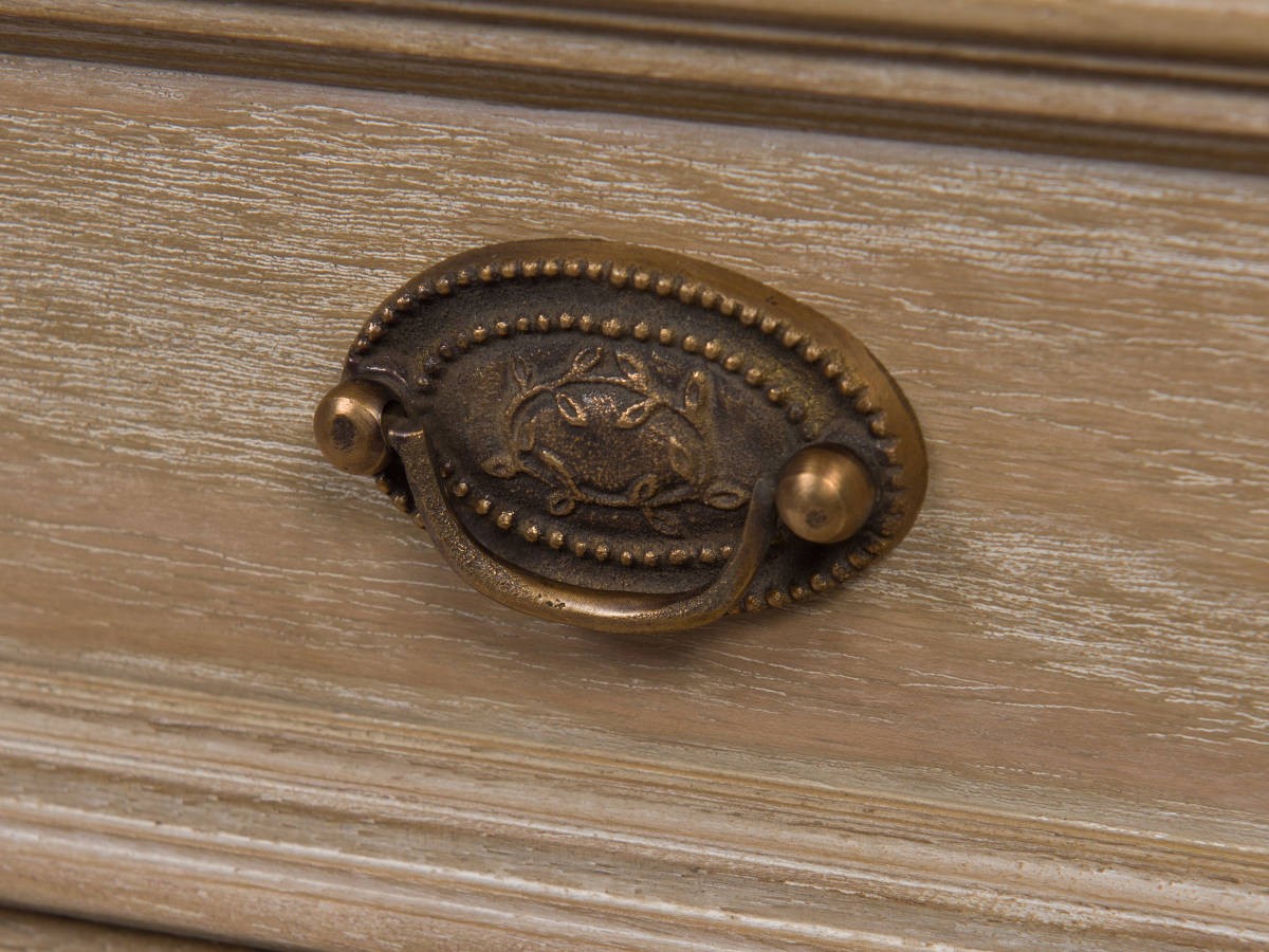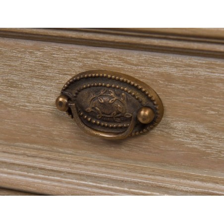 Vous tomberez sous le charme de ses détails : piétement arrondi orné de reliefs délicatfs, poignée en métal et pieds tournés.