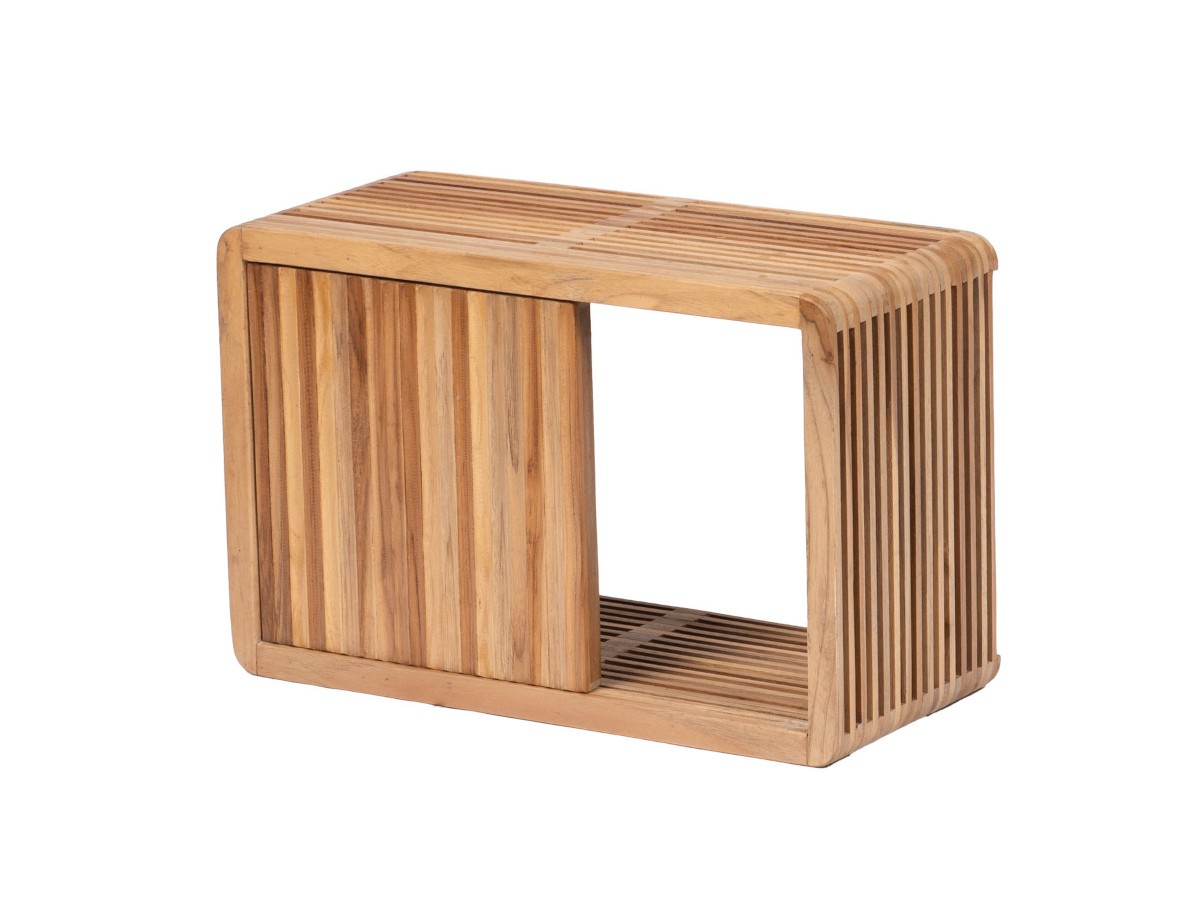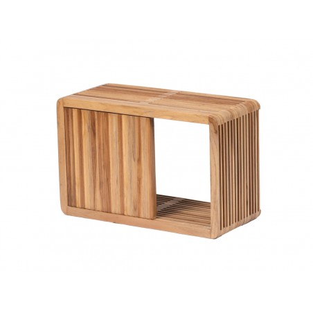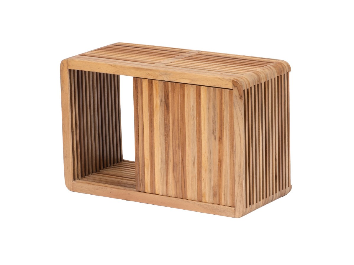 Fabriquée en teck recyclé, elle allie le charme de l’authenticité à une esthétique contemporaine minimaliste. Ses lattes de bois verticales créent un jeu de transparence unique, offrant une sensation de légèreté visuelle immédiate dans votre pièce.