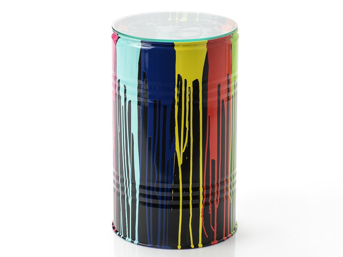 Outre son pouvoir déco indéniable, ce tonneau en métal pourra également faire office de table d'appoint grâce à son plateau de verre situé sur le dessus.