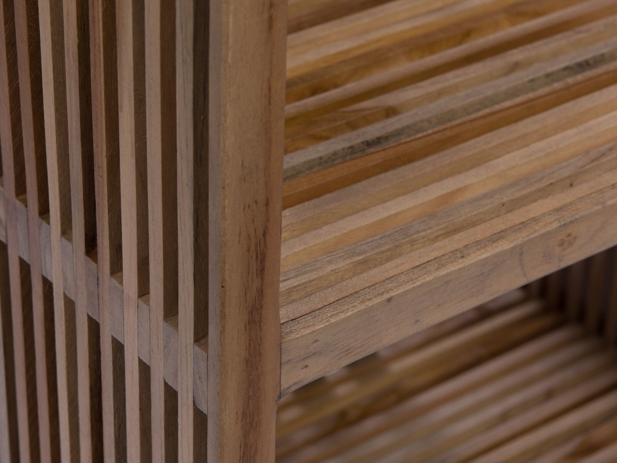 Une bibliothèque en teck massif compacte et élégante pour ranger avec style, même dans les petits espaces ! Craquez pour le modèle Calopsite d'Amadeus.