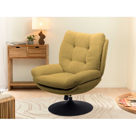 Grâce à son assise en tissu décliné en plusieurs coloris raffinés et à sa base pivotante, ce fauteuil Magnum associe à la perfection design et praticité. Vous pourrez vous installer confortablement pour bouquiner, regarder vos séries préférées ou simplement discuter avec vos proches, tout en profitant d’une liberté de mouvement totale.