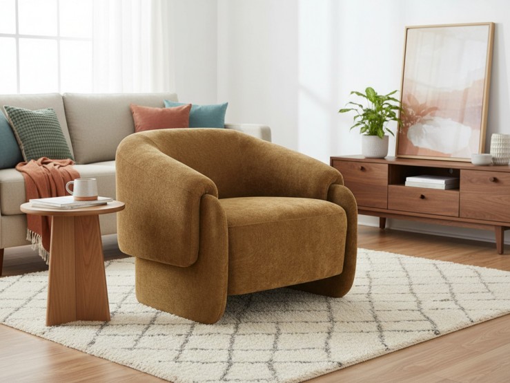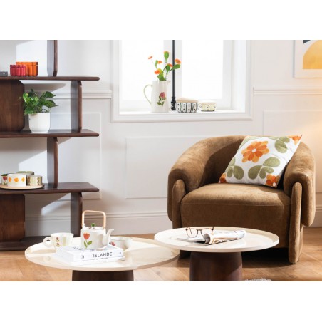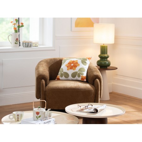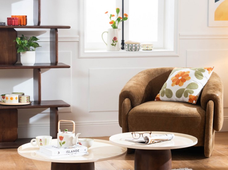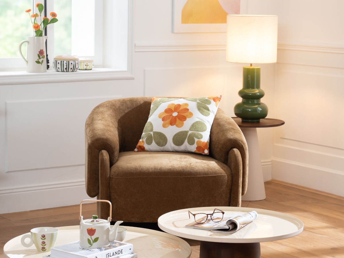 Associez-le à un guéridon en laiton brossé et un tapis crème à poils longs pour accentuer son coloris bronze et créer un coin lecture ultra-cosy.