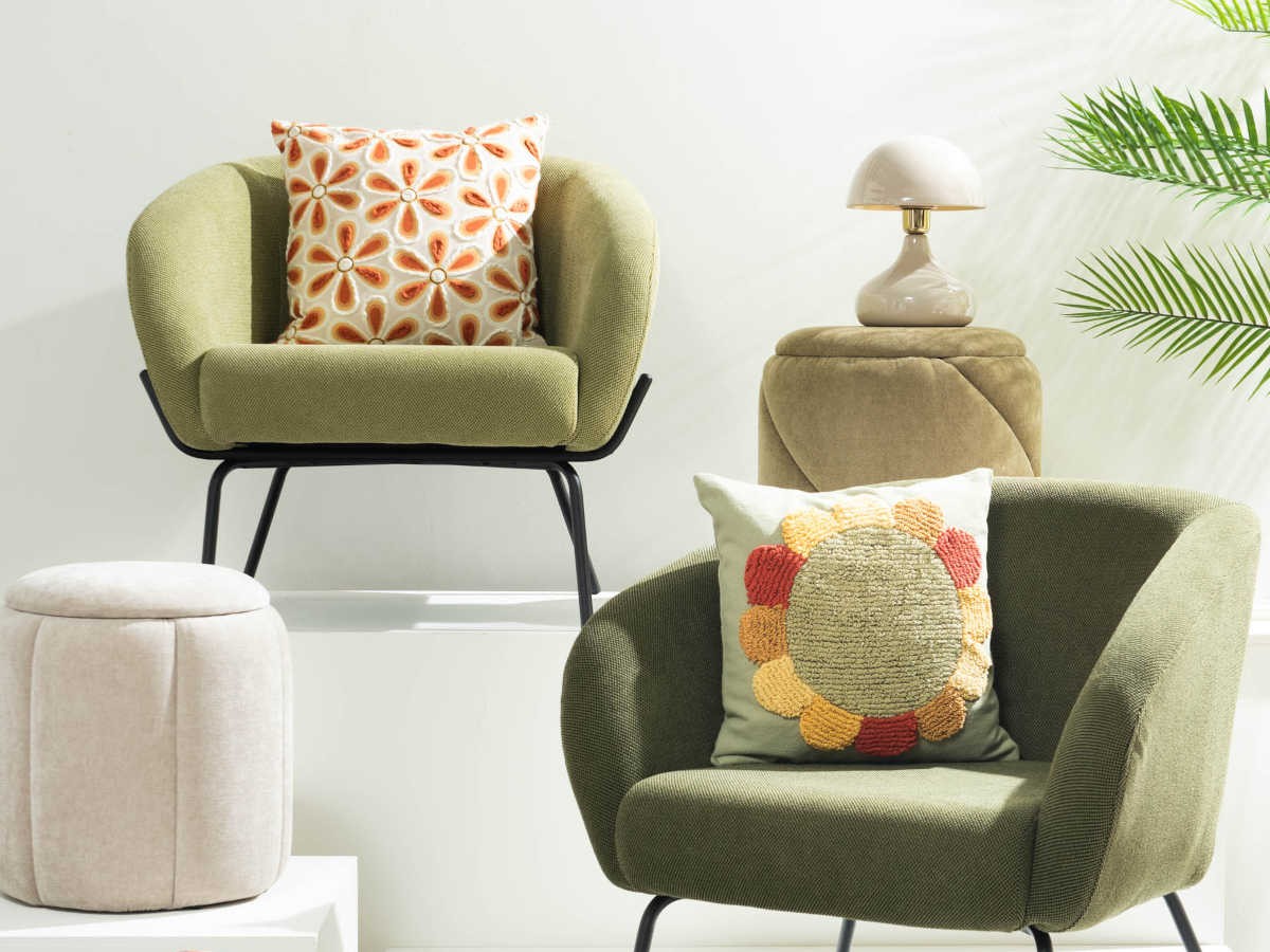 Mariez ce dégradé le fauteuil Dany avec un guéridon en bois clair et une plante tombante pour accentuer l'esprit "jungle chic" de votre salon.