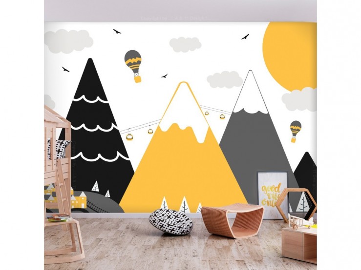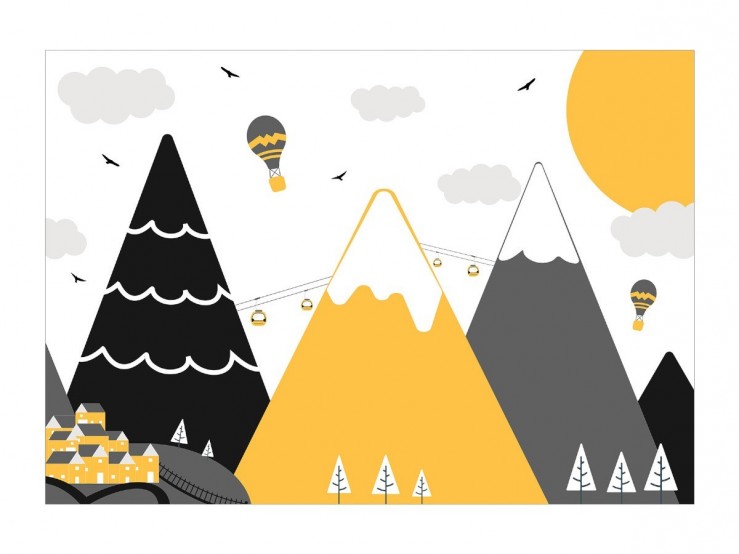 Au sommet de la tendance, le papier peint ‘’Aventures en montagne’’ est ludique. Son illustration de montagnes au milieu des nuages est soulignée par des teintes ultra-tendance : du jaune, du gris, du blanc et du noir. Un mariage coloré de goût qui saura mettre en valeur du mobilier en bois clair comme le pin par exemple.