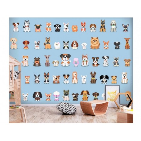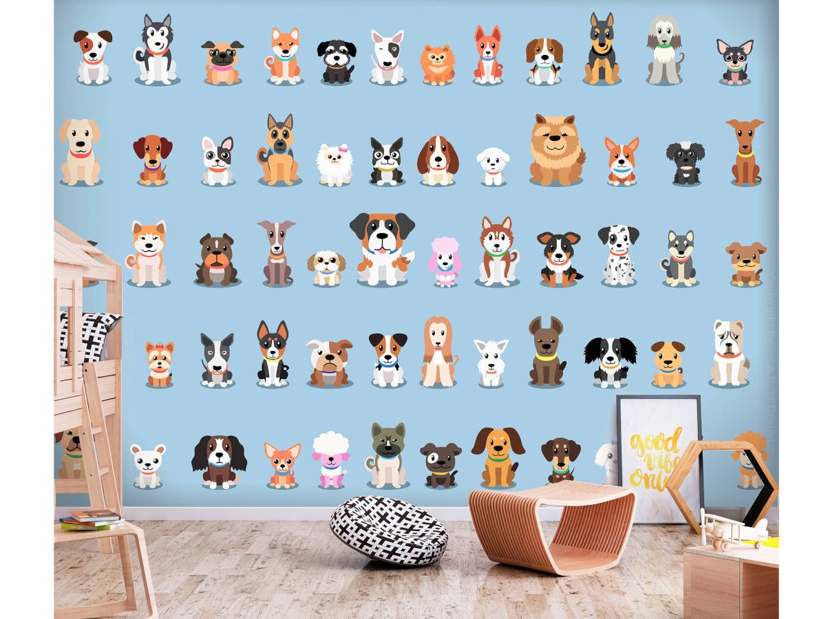 C’est un papier peint trop amusant que voilà ici ! Trop chou avec ses nombreux petits chiens attachants sur un fond bleu, il apportera une ambiance joyeuse et adorable à la chambre de votre enfant.