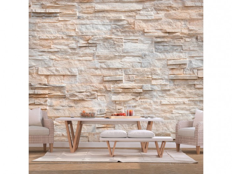 Ce papier peint adhésif moderne et design représente une succession de pierres beiges claires, une illustration qui donne une illusion parfaite de véritables pierres. Une fois posé, ce papier peint changera la perspective établie de votre décoration intérieure pour un vent de renouveau. Il s'agit d'un trompe l'oeil naturel et tout à fait authentique !