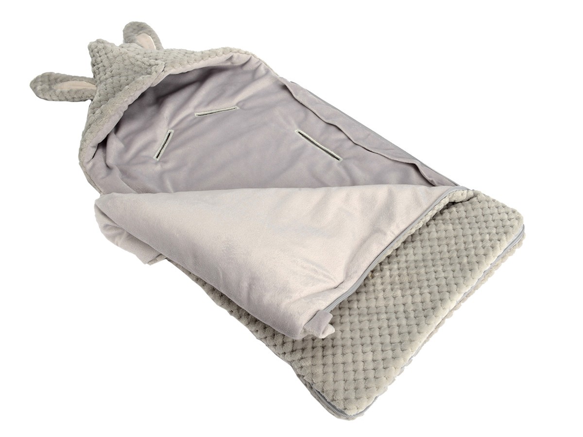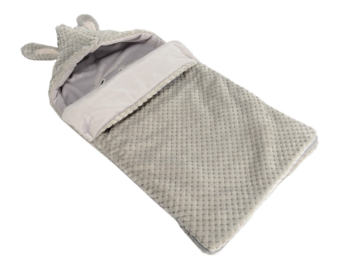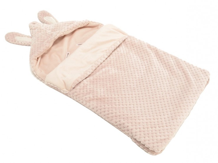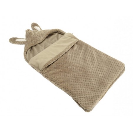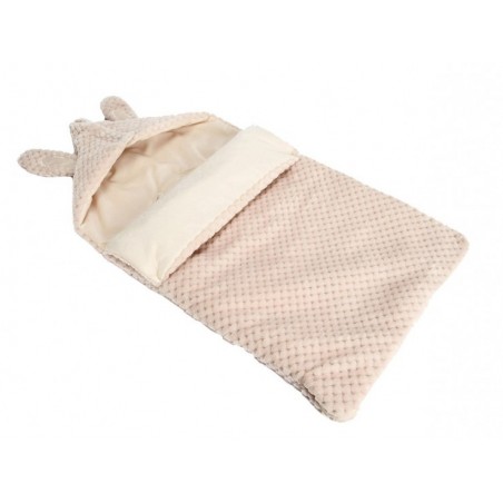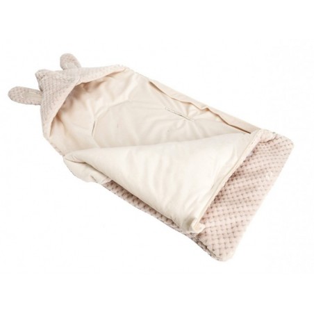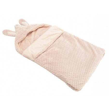 Deux oreilles de lapinou sur une adorable capuche, et une couverture toute douce pour envelopper bébé d'un cocon de chaleur.