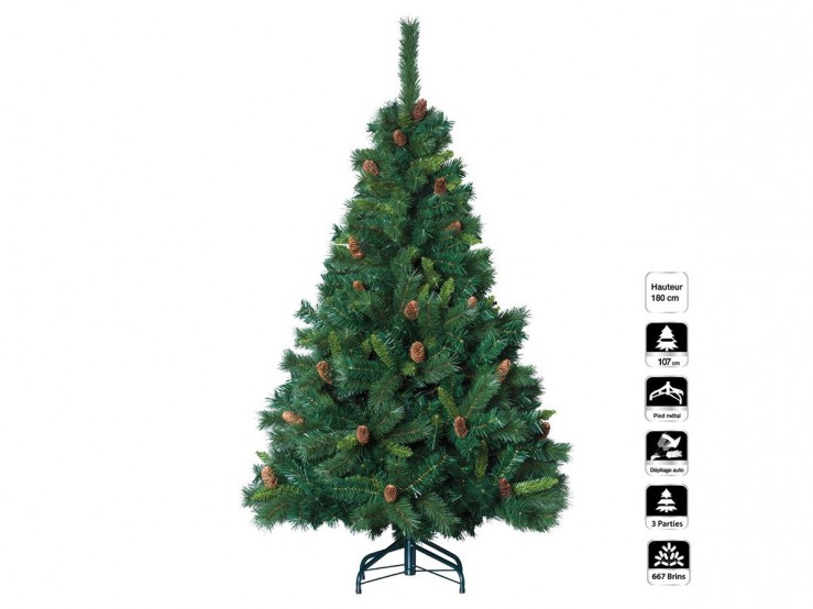 Ce sapin de Noël mesure 180 cm hauteur et 107 cm d'envergure pour convenir à chaque maison dotée de pièces moyennes. Ce sapin artificiel est soutenu par un solide pied en métal, pour une stabilité au sol parfaite.