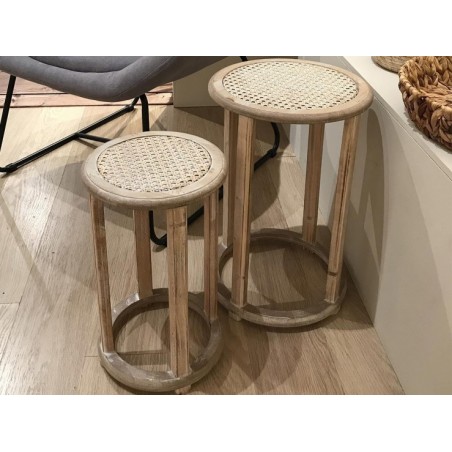 Lot de 2 tables d'appoint cannage - Nos Envies Déco
