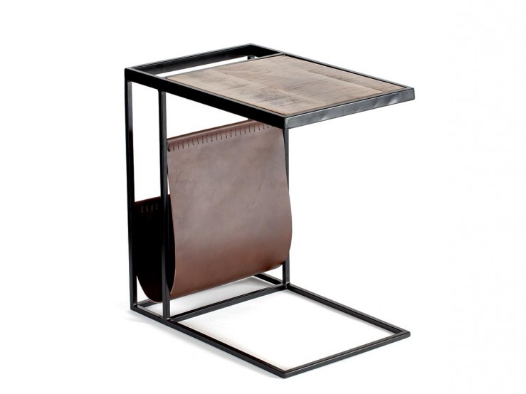 Table d'appoint pour canapé avec pochette en cuir Avignon - MH London
