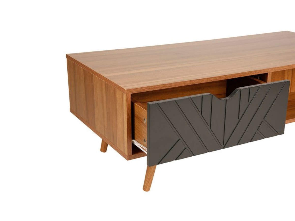 - Un tiroir de rangement noir pour un rangement en toute discrétion. Sa façade texturée ajoute une légère touche d’originalité à la table basse.