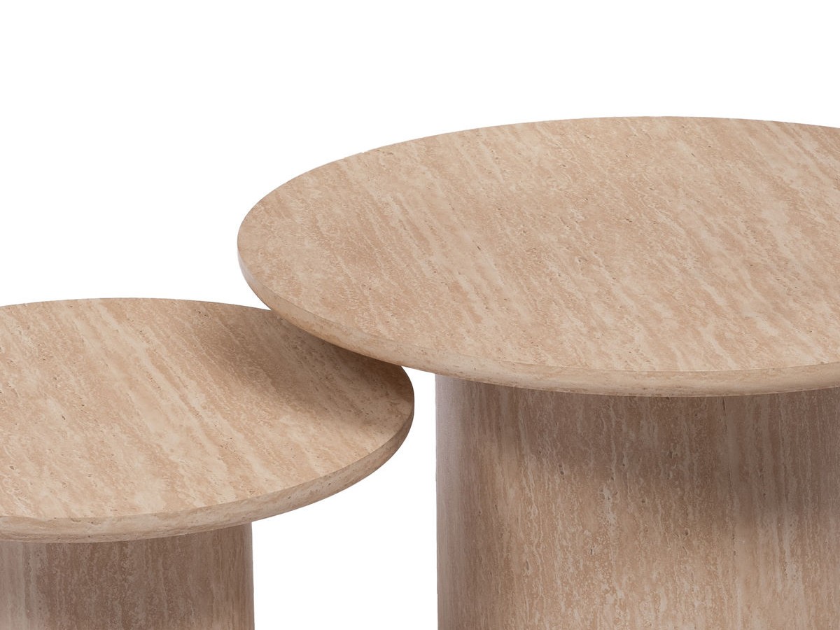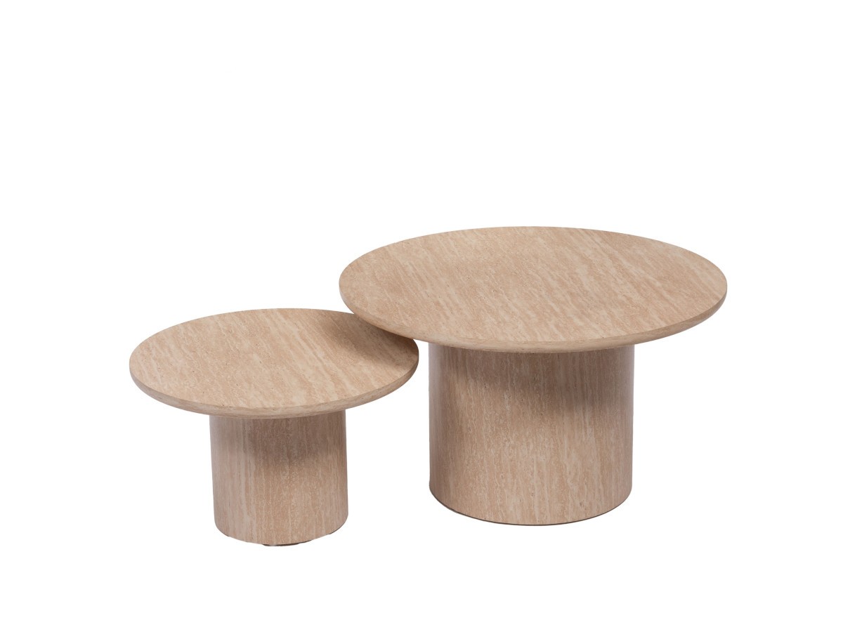 Les pieds cylindriques en papier compressé assurent stabilité et originalité tout en gardant une silhouette douce et contemporaine. Résultat : un duo pratique, facile à déplacer, qui crée instantanément une ambiance élégante et conviviale.