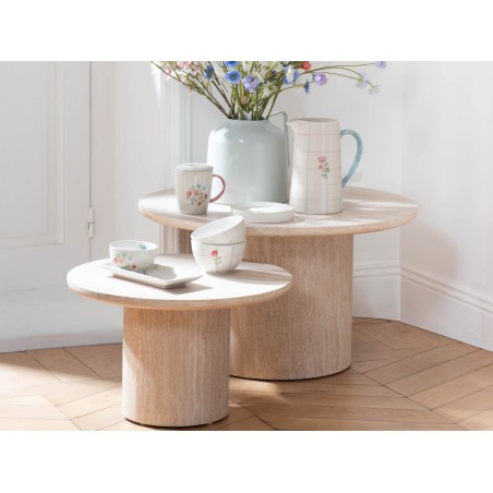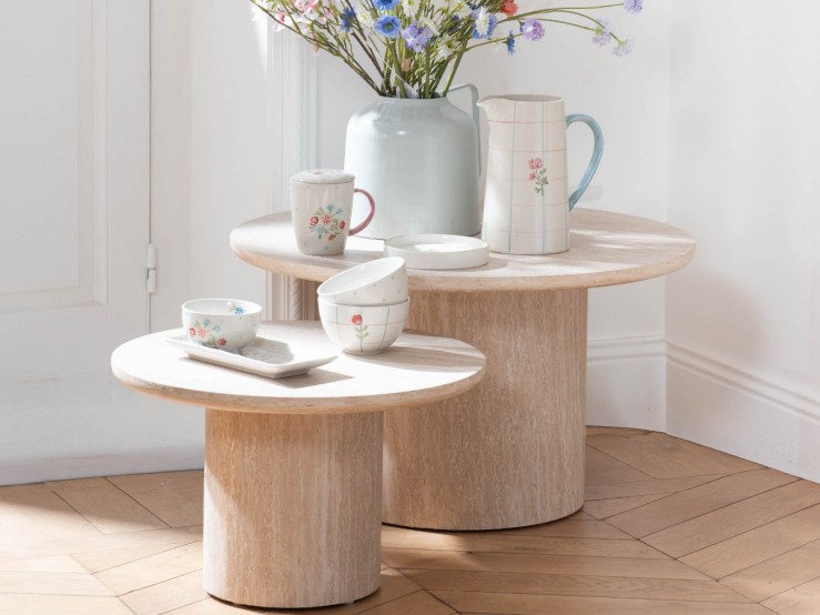 Décalez légèrement les deux tables pour créer un effet gigogne moderne et posez-y un vase en céramique et quelques beaux livres pour une ambiance naturelle et raffinée.