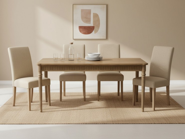 Son plateau apporte une touche simple et naturelle, tandis que ses pieds tournés lui donne beaucoup de caractère. Un ensemble harmonieux !