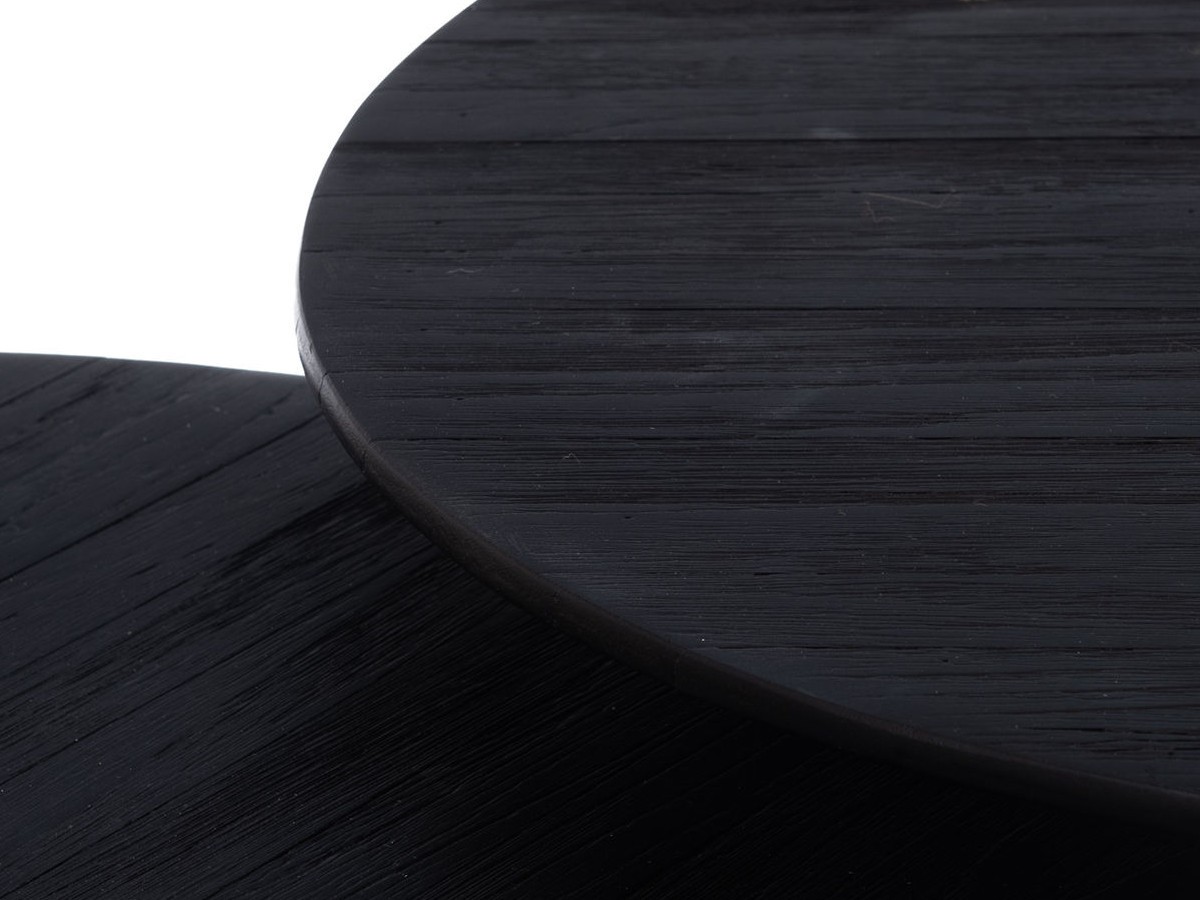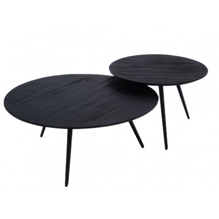 Alliant l’authenticité du teck recyclé à la modernité d'un piétement en métal fuselé, ces tables offrent une flexibilité totale : regroupez-les pour former une grande table basse centrale sculpturale, ou séparez-les pour ponctuer votre pièce d'assises d'appoint et de bouts de canapé.