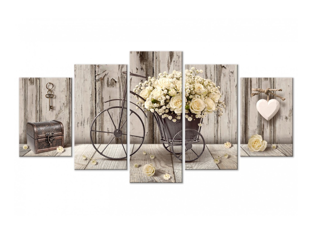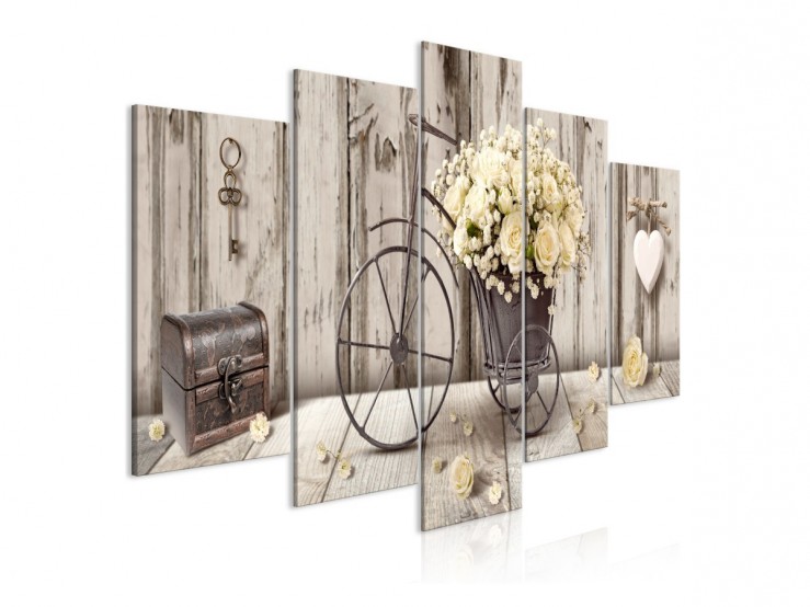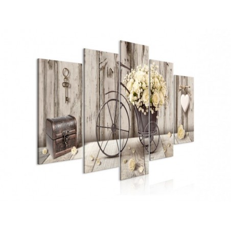 Dans un esprit tout à fait vintage, ce tableau Artgeist allie des couleurs tendances avec des éléments décoratifs qui traversent les âges, tout en gardant un charme fou : une petite malle, une clef, des bouquets, sur un fond bois chaleureux.