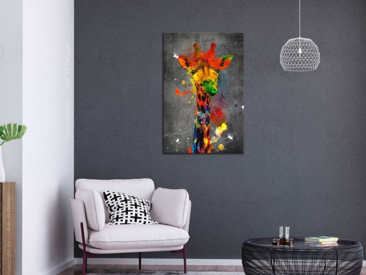 Des couleurs vives et contrastantes, une girafe pour le moins qui s'intégrera avec style dans votre intérieur, pour une décoration de caractère.