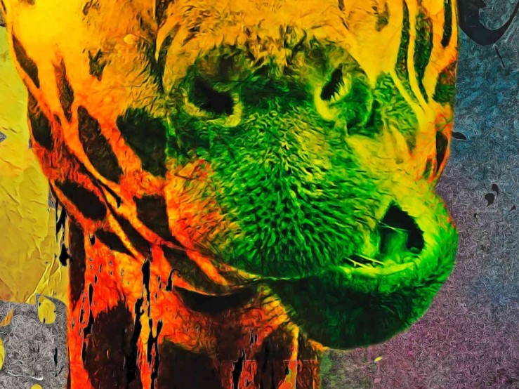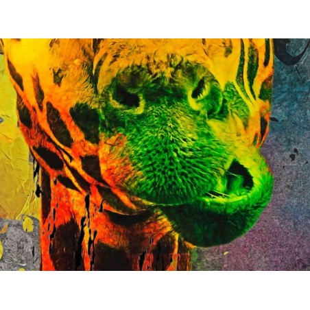 Magnifique et imposante, la girafe est subtilement dégradée par des mouvements d’éclaboussures de peintures aux teintes dynamiques. Une alliance entre élégance, bestialité et créativité, le résultat est tellement original et moderne !