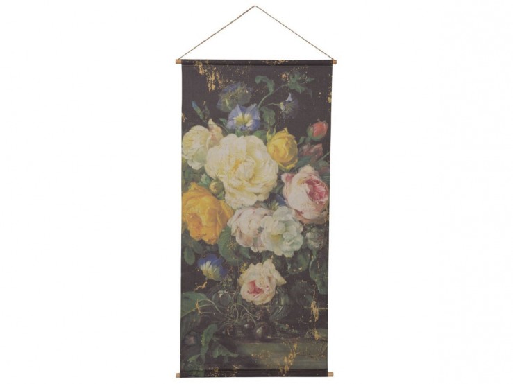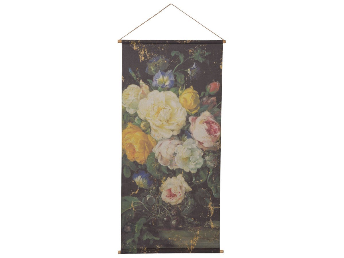 Personnalisez et embellissez votre intérieur avec ce sublime Kakemono Douceur Floral d'Amadeus. Une reproduction florale suspendue dans un style vintage qui représente un superbe bouquet de fleurs luxuriantes : des roses jaunes, roses et blanches, accompagnées d'autres petites fleurs romantiques.