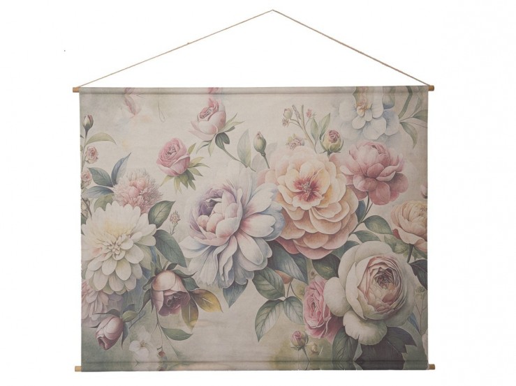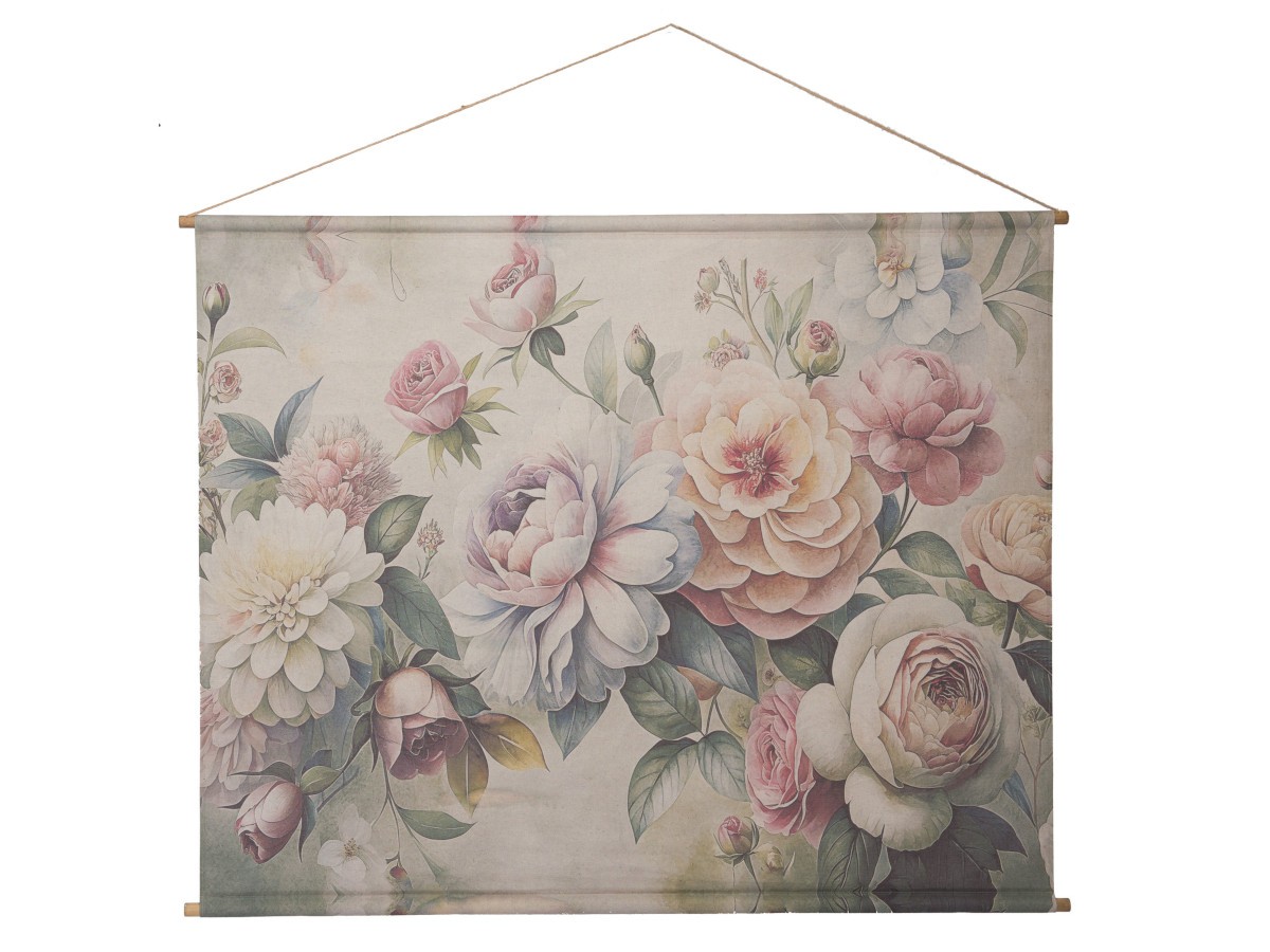 Le Kakemono Fleurs Royales d'Amadeus éveillera vos sens en dévoilant une pièce absolument vibrante de 125 x 160 cm. Elle allie la douceur des couleurs pastelles à la finesse du tissu et du bois.