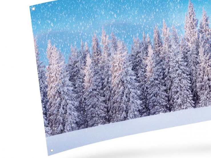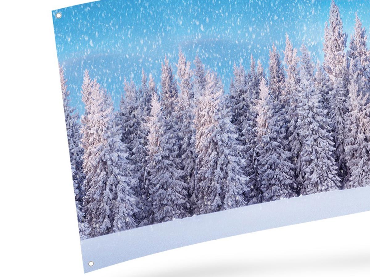 La toile en tissu Forêt enneigée possède 4 oeillets qui facilite son installation !