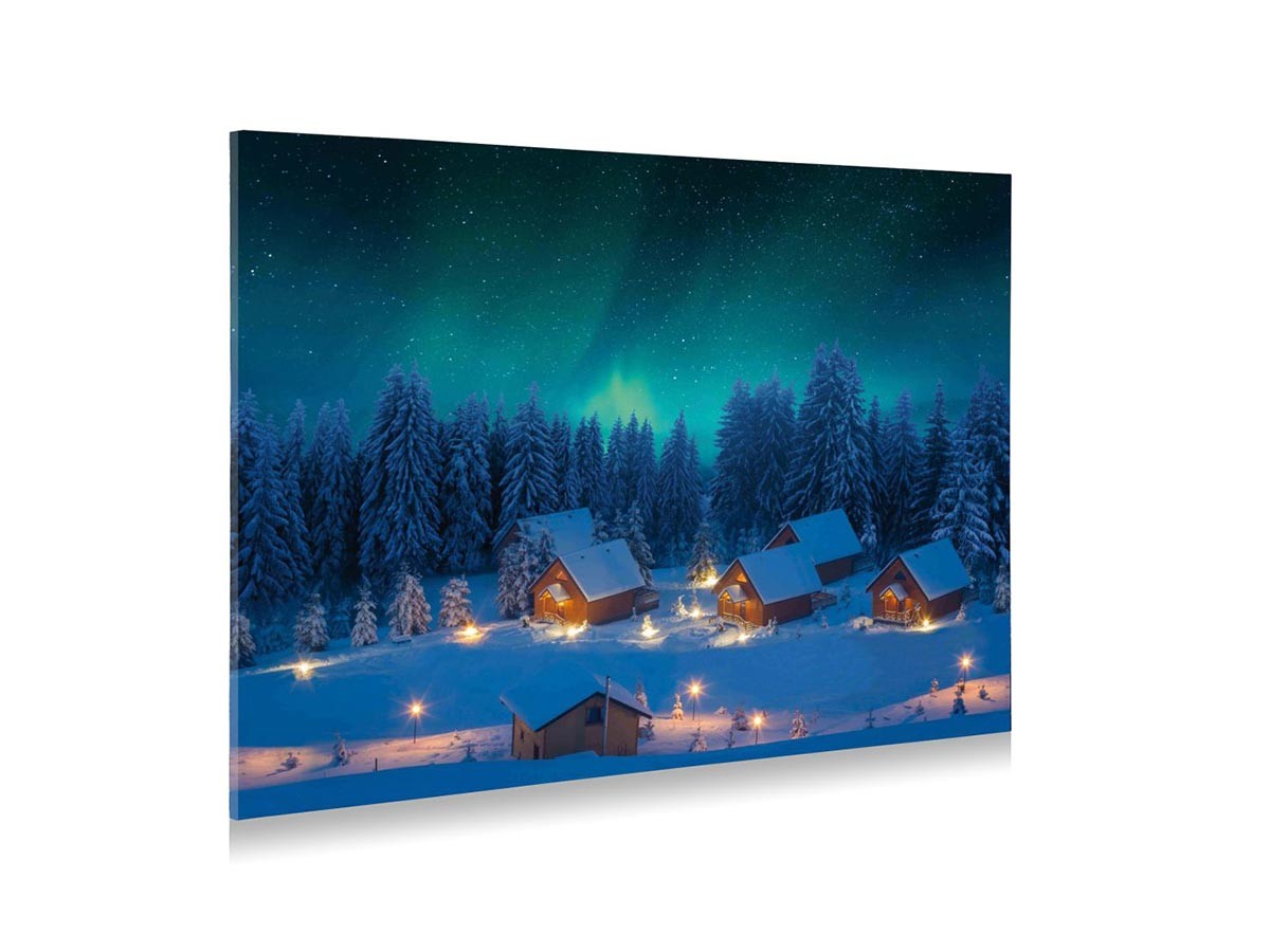 Toile de fond de Noël en tissu avec LED Aurores Boréales - 76 x 56 cm - My Village