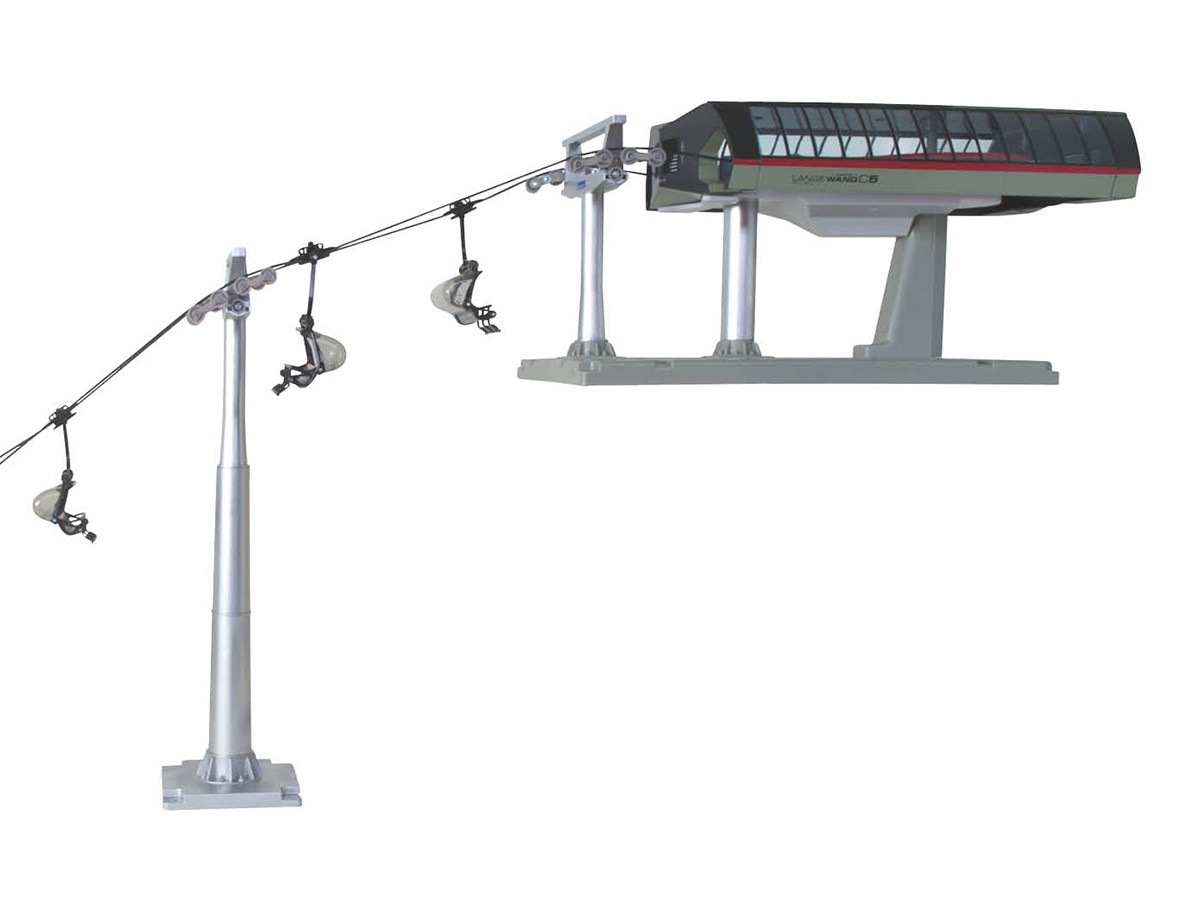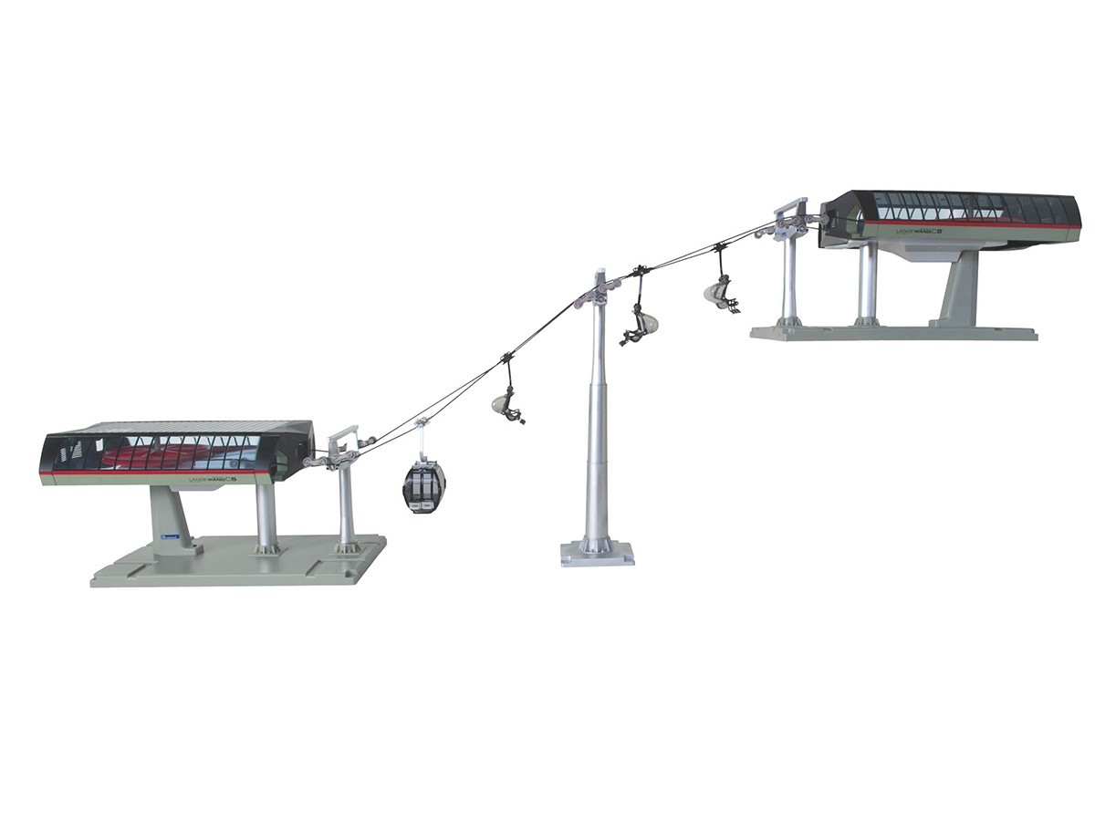 Il est livré avec 2 stations haute montagne, 3 télésièges 2 places et 1 cabine VIP + 1 poteau +1 câble rallonge de 8 mètres. De plus, il fonctionne avec soit 3 piles AA ou avec un adaptateur (en option).