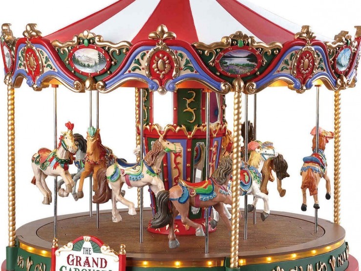 Replongez en enfance et égayez votre décoration de fête en donnant vie à votre village de Noël grâce à l’incontournable grand carrousel de Lemax.