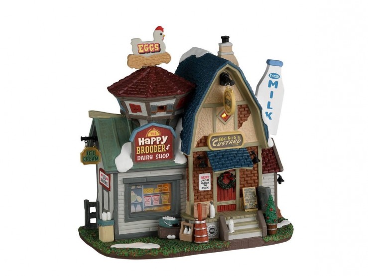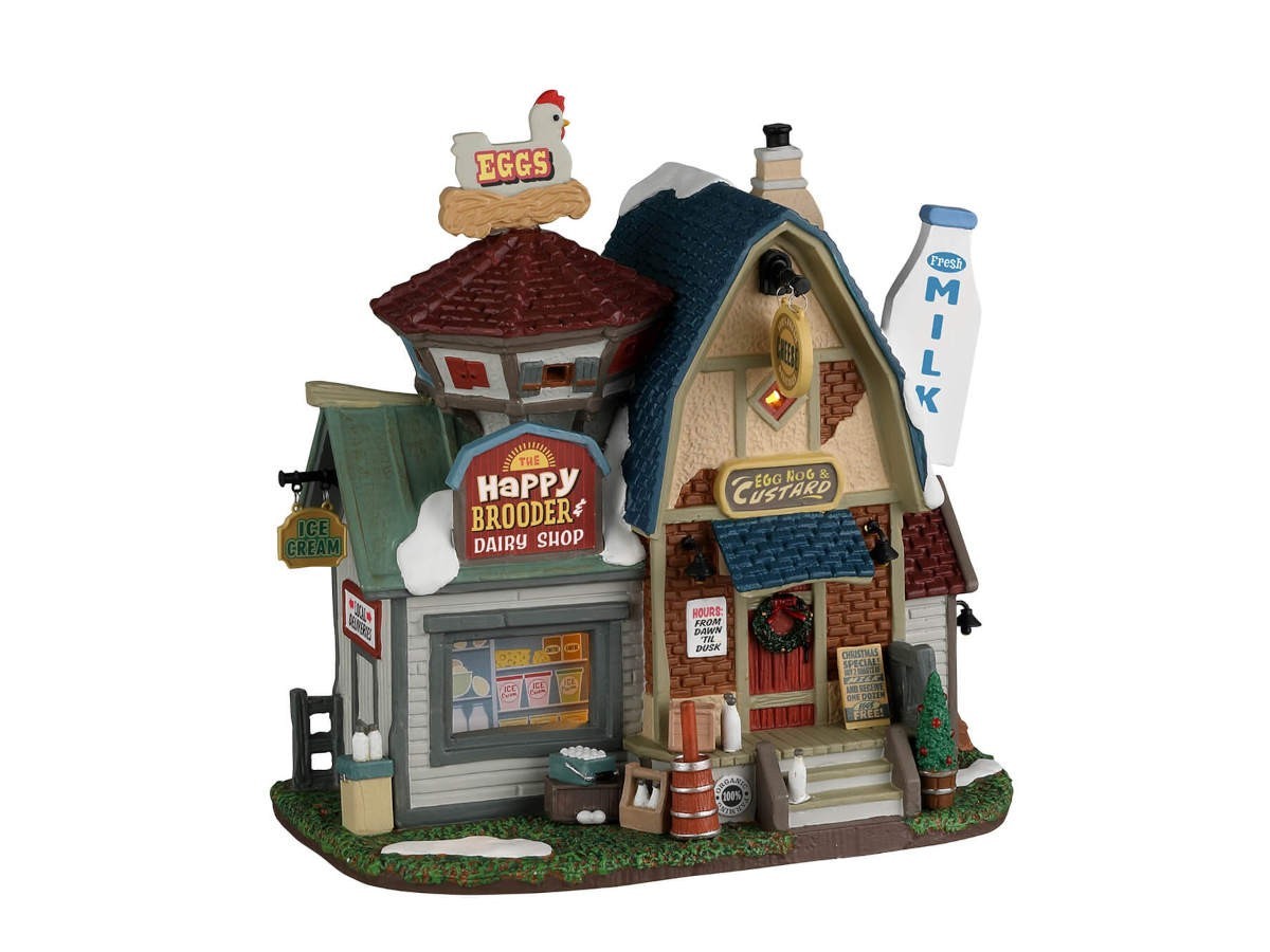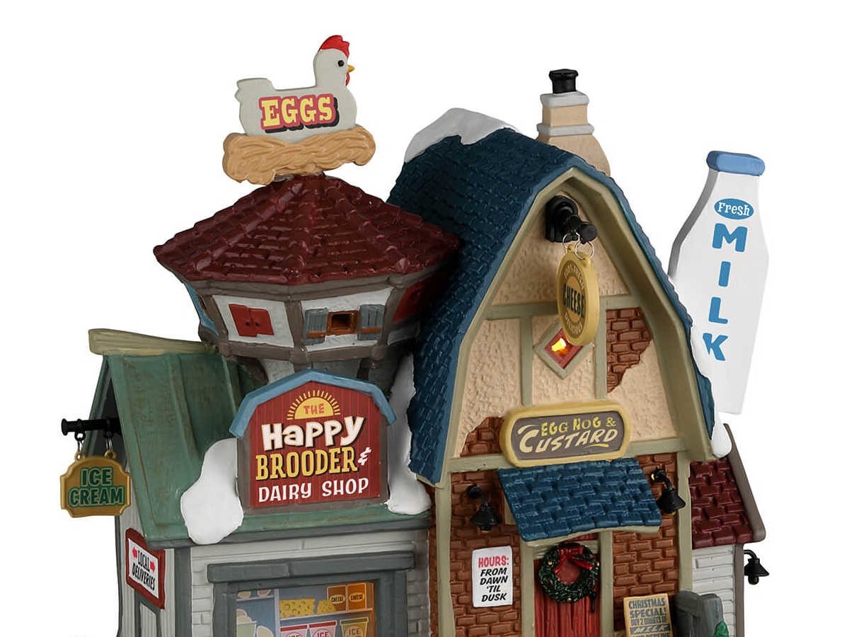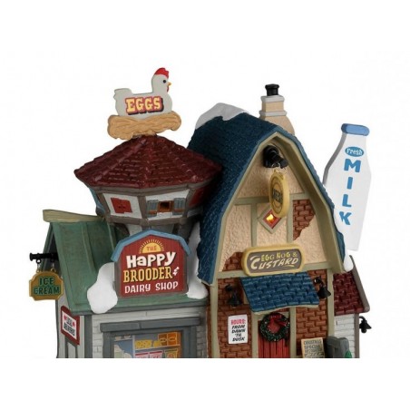 Apportez de l'authenticité à votre village de Noël grâce à la crémerie The Happy Brooder and Dairy de LEMAX. L 18 x l 12 x H 19 cm.