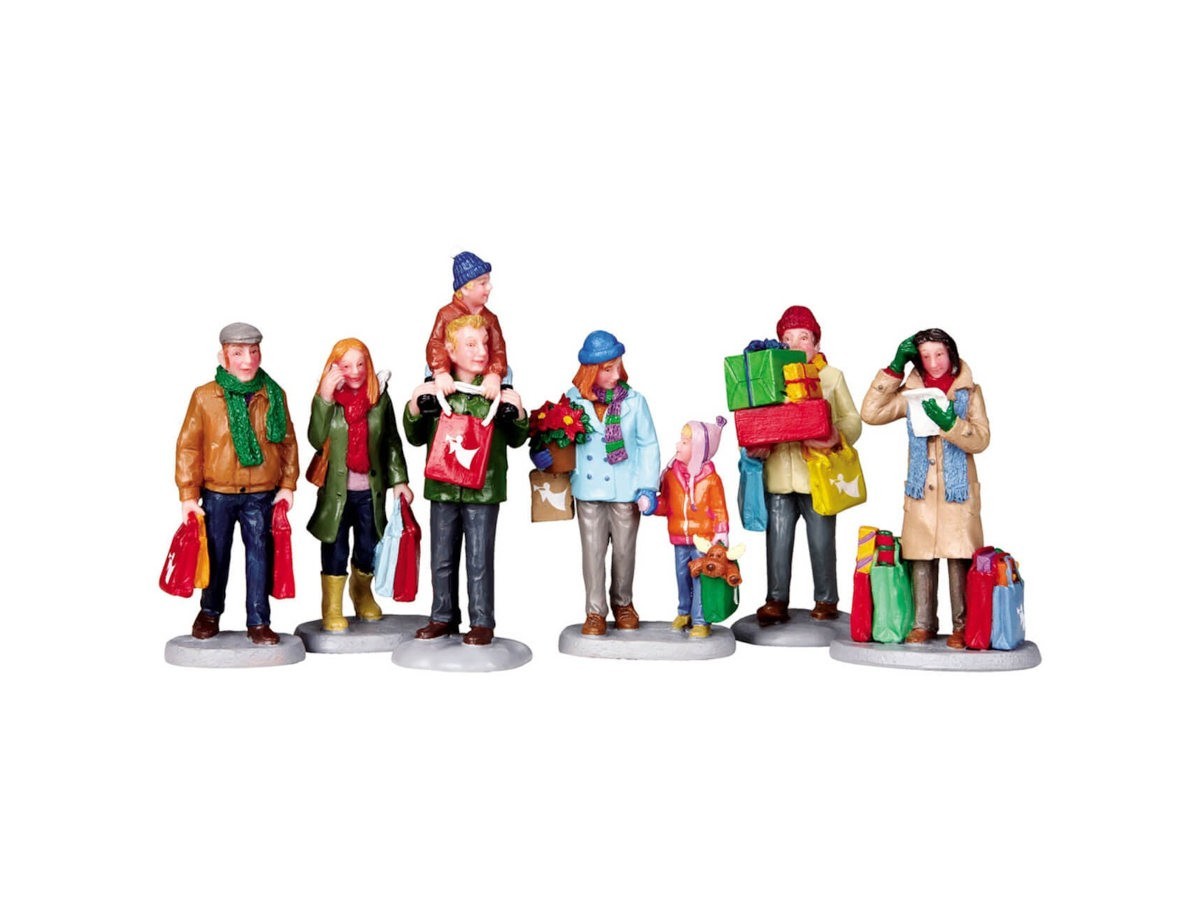 Le shopping de Noël est bien lancé, le grand jour approche et les vacanciers et habitants de votre village vous le font savoir grâce à ce lot de 6 figurines Lemax.