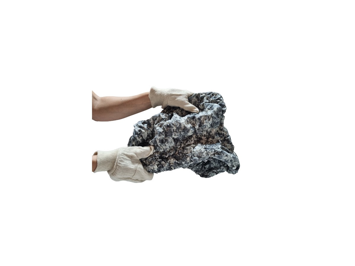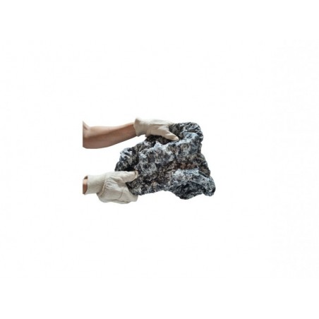 Elle mesure 120 cm de long pour 100 cm de large et imite la texture des rochers.