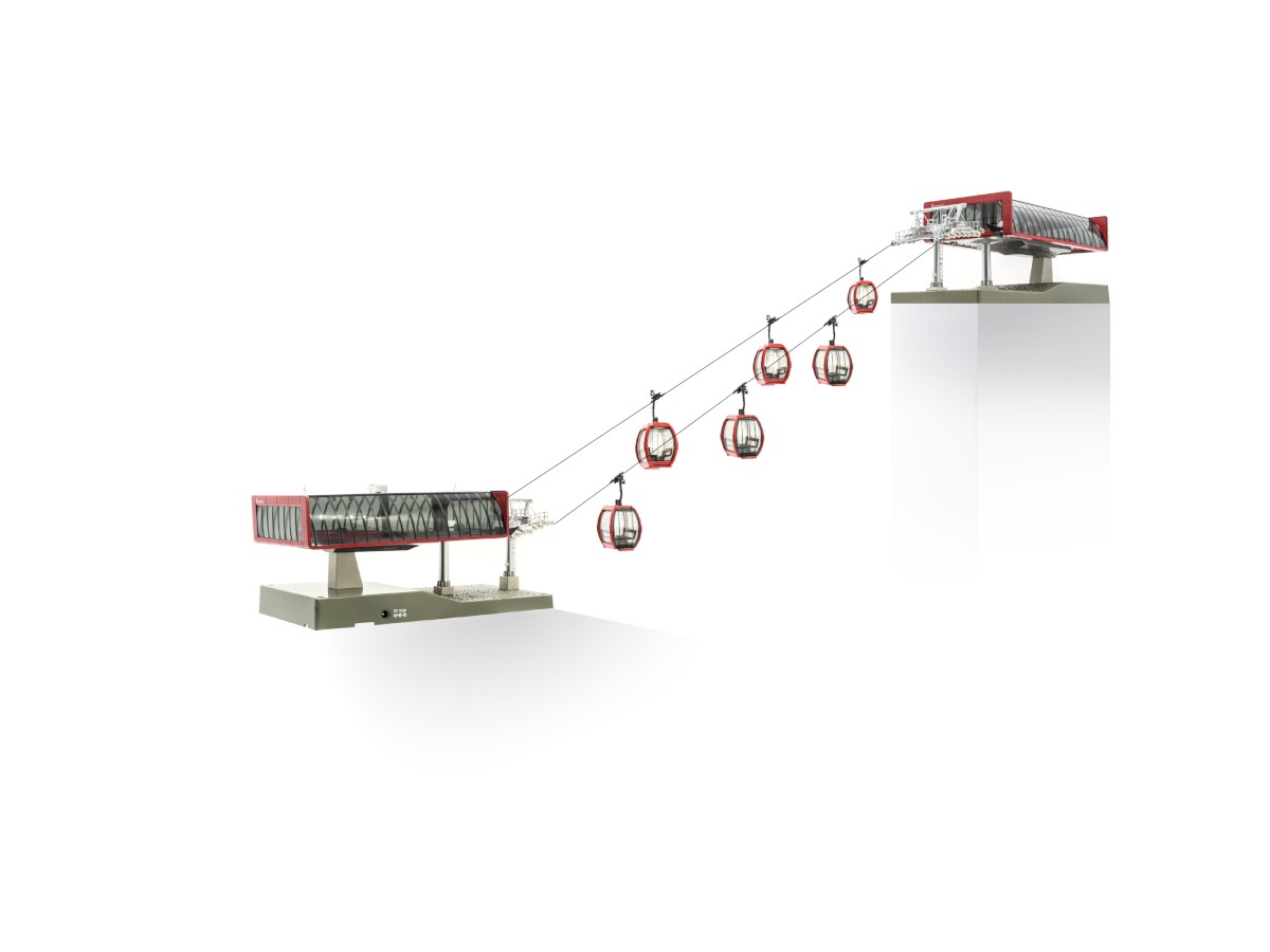 Pour des allures de station de ski, ce téléphérique motorisé à l'échelle 1:87 est parfait pour que vos villageois s’adonnent aux sports d’hiver. Réaliste grâce à ses finitions travaillées, il est proposé avec 6 cabines rouges et des stations éclairées. Son dispositif apportera une scène attractive dans votre village de Noël. Le câble mesure 10 mètres et le câble sectionnel de remontée mesure 3 mètres.
