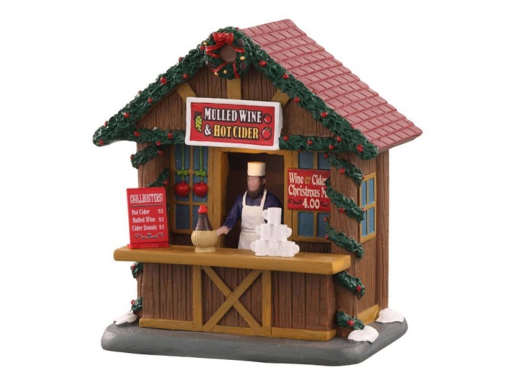 Qui dit marché de Noël dit vin et cidre chaud ! Craquez pour ce chaleureux stand vin chaud et cidre chaud de Lemax et agrandissez le marché de Noël de votre village miniature.