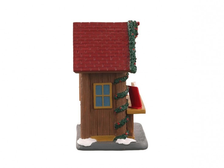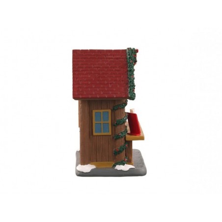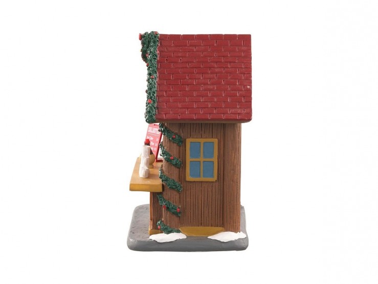 Fait en polyrésine, le stand de Lemax donne l’impression d’être en bois, un petit chalet traditionnel orné de guirlandes et de couronnes pour un esprit des fêtes réussi !