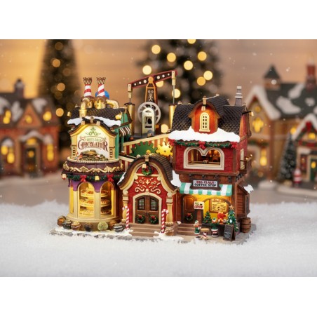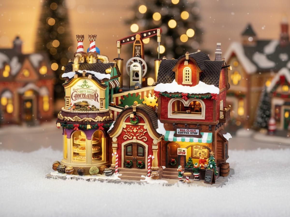 La chocolaterie Lemax est idéale pour donner vie à votre village festif, offrant un spectacle captivant qui éveillera la nostalgie des Noëls d'antan.
