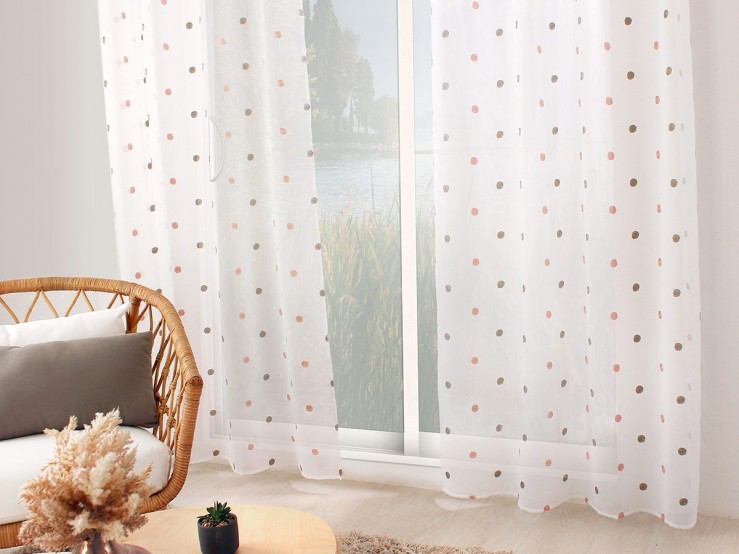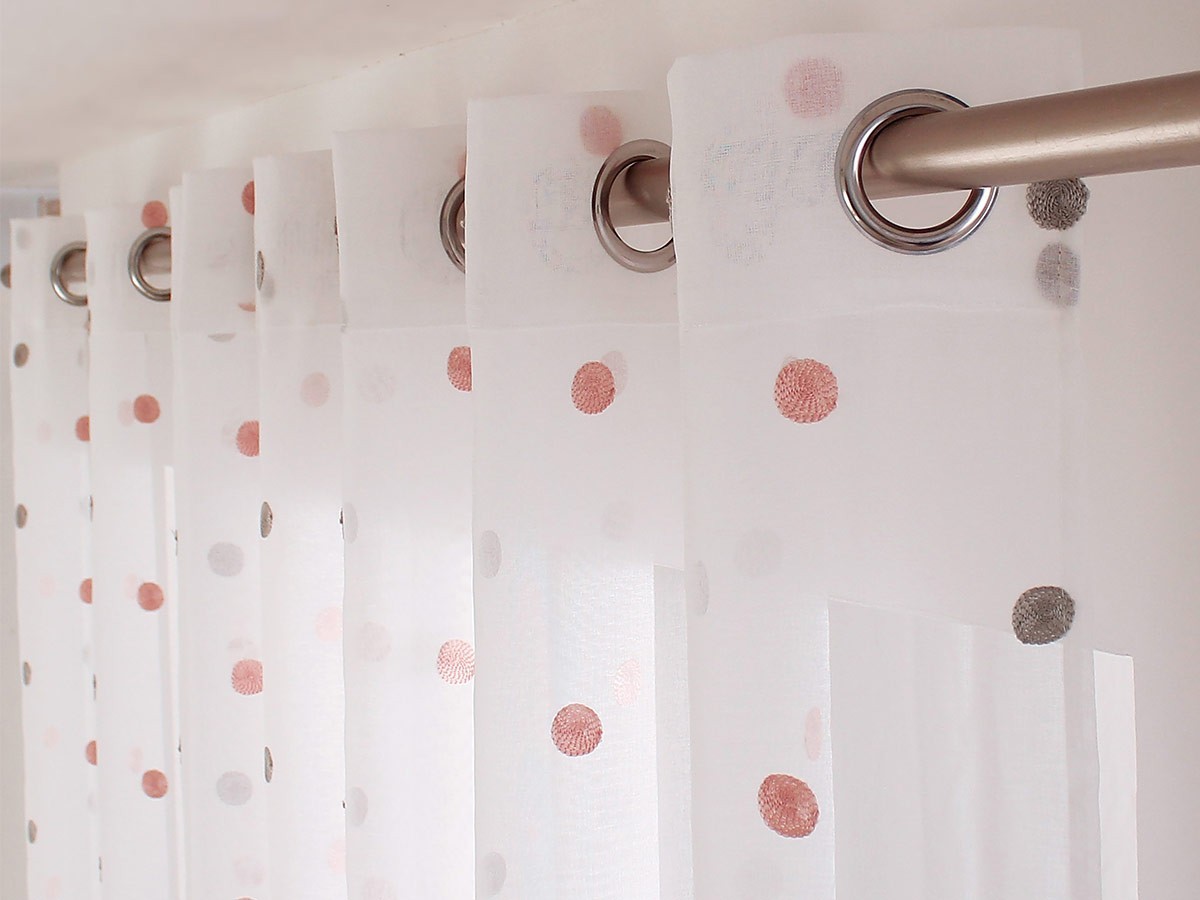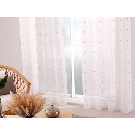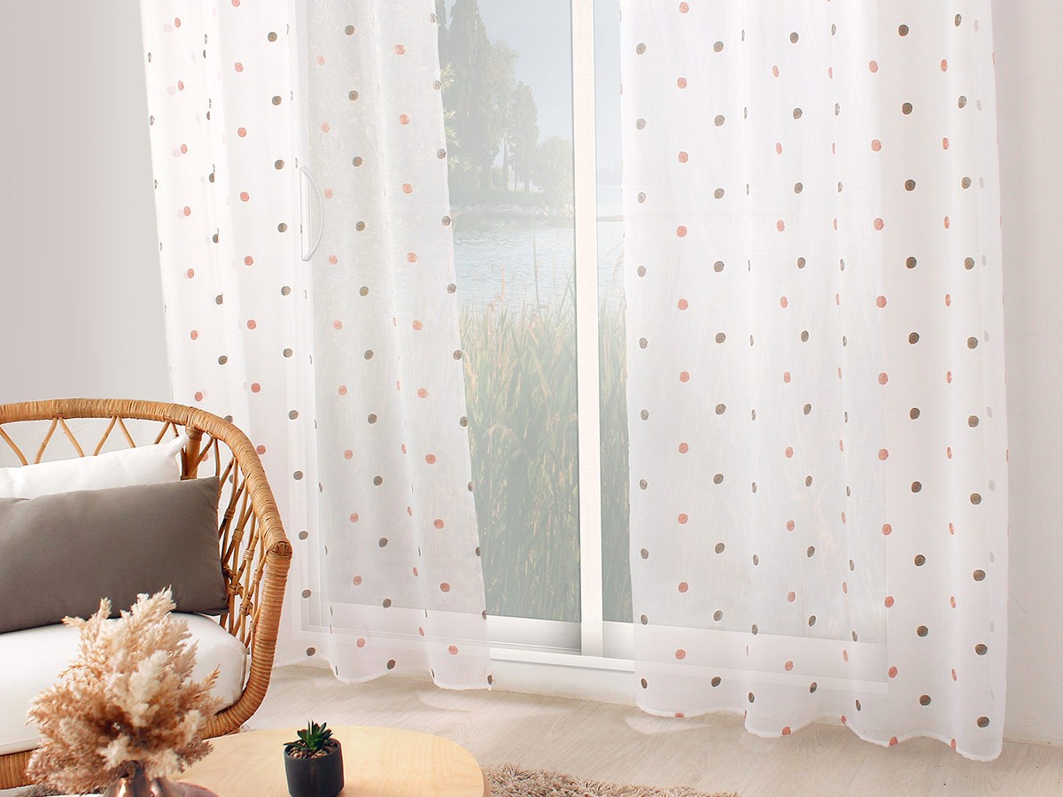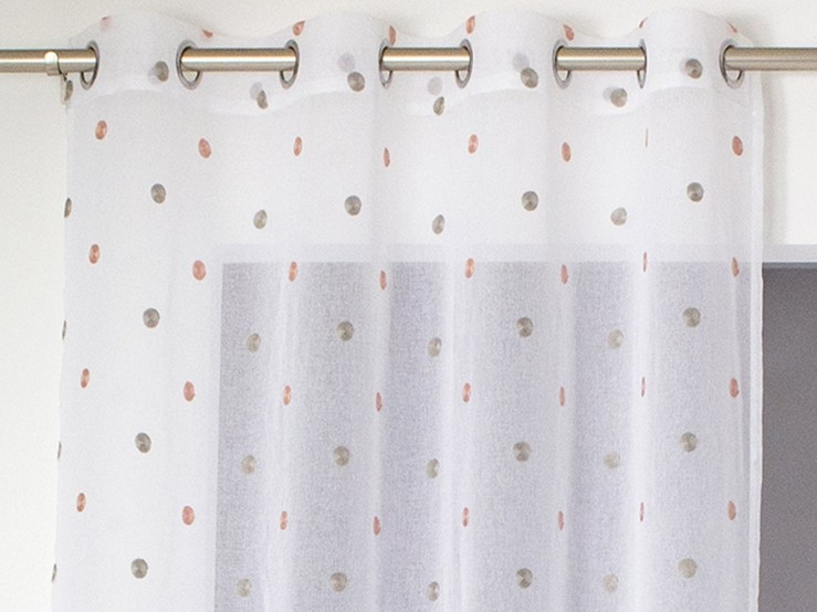 Agrémenté de petits motifs brodés à la main, en forme de ronds de couleur, ce voilage étamine apportera une touche raffinée à votre intérieur.